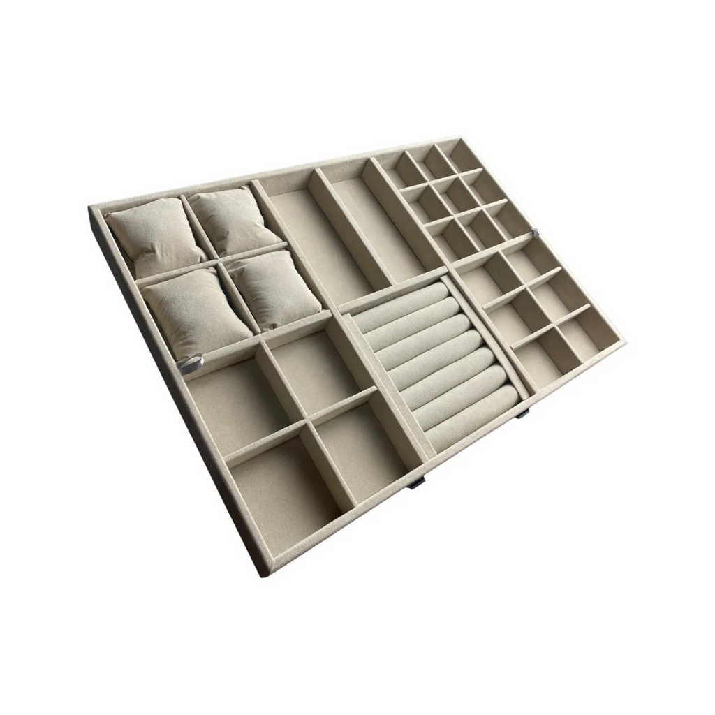 • Amplo espaço (48 × 35 × 5 cm): ideal para organizar colares, pulseiras, brincos, anéis e acessórios de forma prática e refinada.