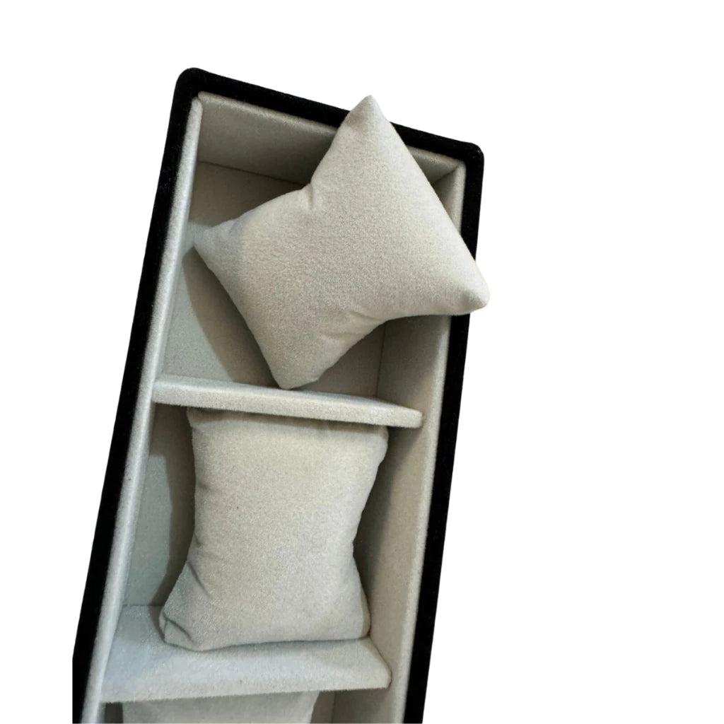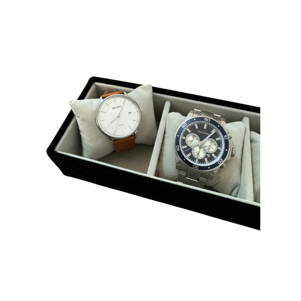 Proteção Completa: Cada relógio fica acomodado em almofadas macias de veludo, com enchimento acrílico, que evitam riscos e desgastes.