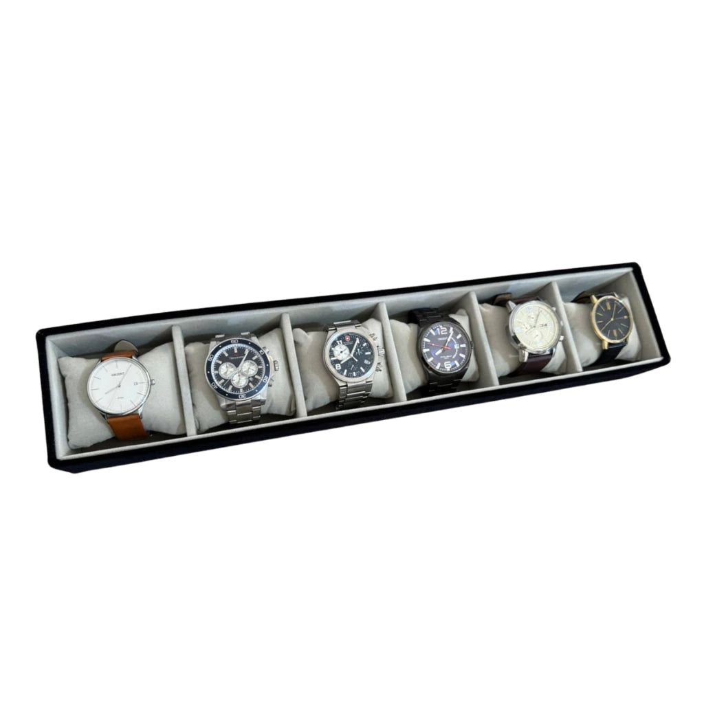 Seus relógios merecem mais do que ficarem espalhados pela gaveta. Com o Organizador de Relógios London, você garante proteção, sofisticação e praticidade para até 6 peças em um único lugar.